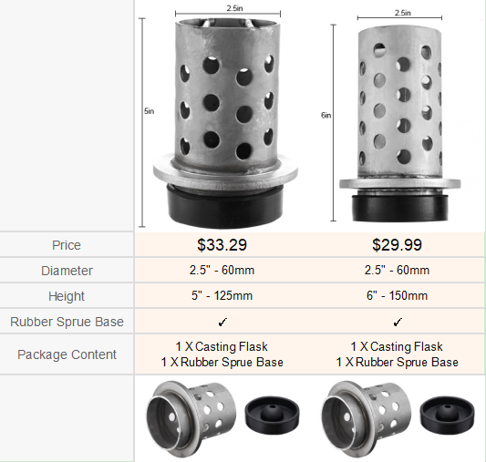 - 2.5" x 5" Perforated Casting Flask: About 65mm in diameter, and 125mm in height.